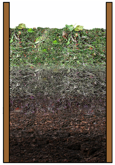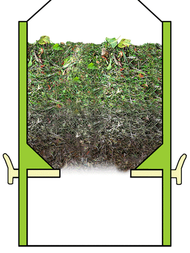 Mit seiner patentierten Gleit- und Stützvorrichtung wird in einem SUPERCOMP auch der innere Haufenkern von unten nach oben vollständig durchlüftet (Kamineffekt), da der Haufen nicht mehr mit vollem Gewicht am Boden lastet. Eine Verdichtung wie bei bei Komposthäufen oder Kompostern ohne Technik, bei denen das Kompostgut mit vollem Gewicht am Boden liegt und nur unzureichend Luft durchlässt, findet hier nicht statt. (Bilder)